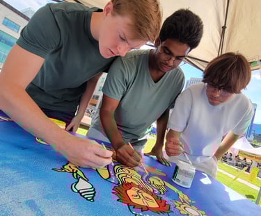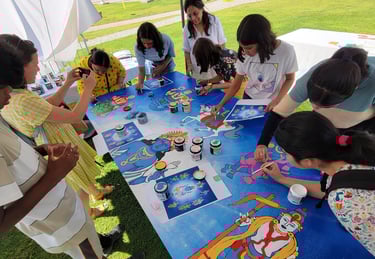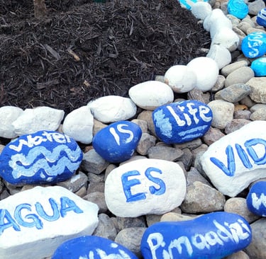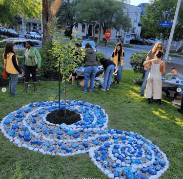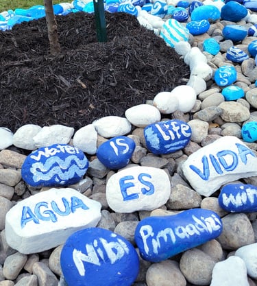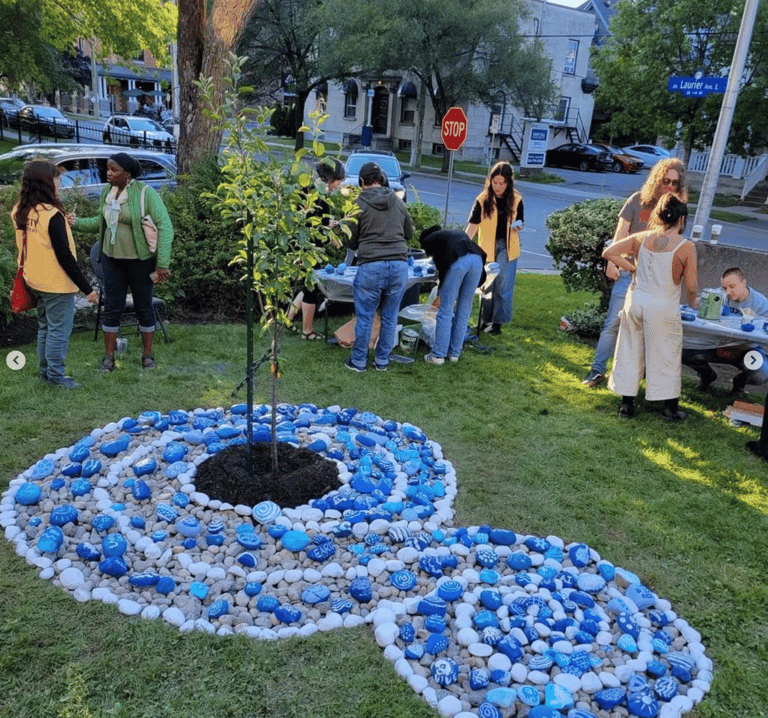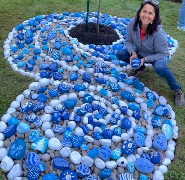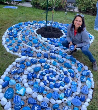 In 2022 Amnesty International commissioned me to create an art installation around the tree planted at their headquarters in Ottawa. At first, we talked about painting rocks, so I said: “Let's paint a river! Let's create a river with the community!” And so, we created a river as a symbol of all those things that we must recover, remake and rebuild.