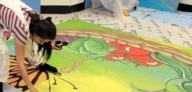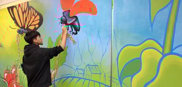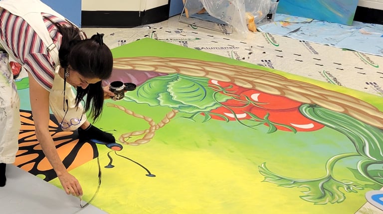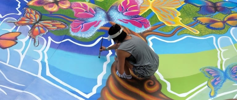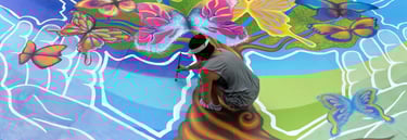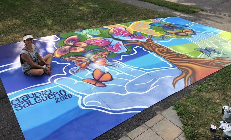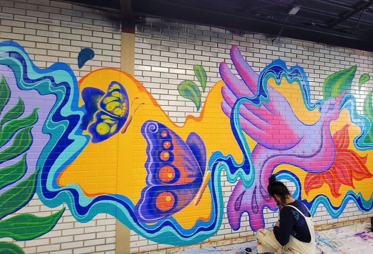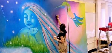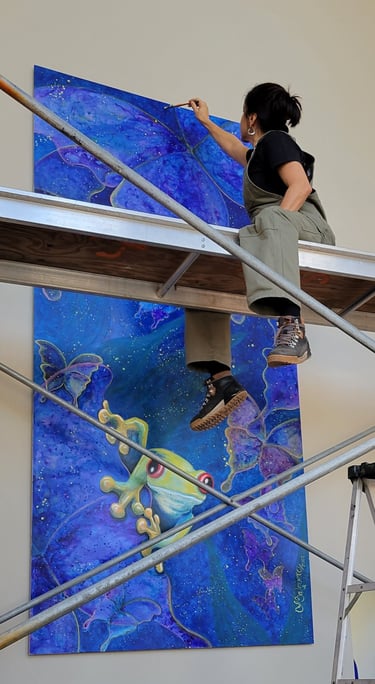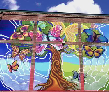 This mural was commissioned by Dr. John I. Kershman for his Orthodontics and Periodontics clinic on Bank Street in Ottawa during the COVID-19 Pandemic. The mural I created was dedicated to transformation, resilience, patience and freedom from fear and judgment. Located at 1579 Bank St, Ottawa.
