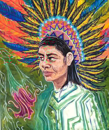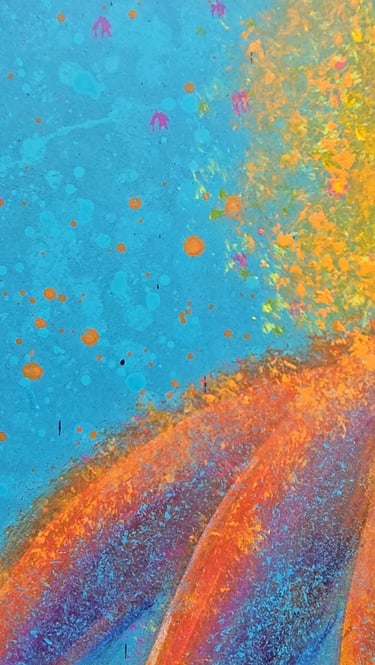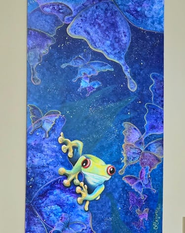 I painted this piece inspired by a backpaking trip to the Amazon in 2017. My adventure partners -my daughters- and I, spent 5 days and nights trekking in the jungle with an indigenous guide. The first night after setting up our camp in the midle of nowhere, Carlitos, our guide, asked us to turn off our head lamps. When our eyes where adjusted to the dark we discovered an ethereal universe of luminescent insects including some plants. A magical and unforgettable surprise...