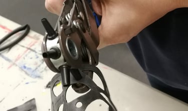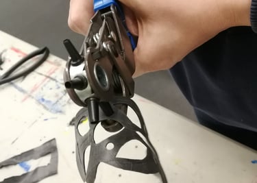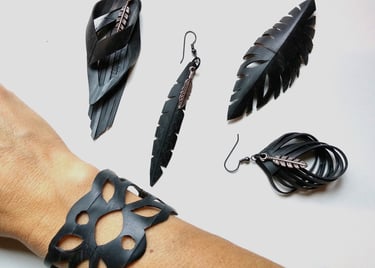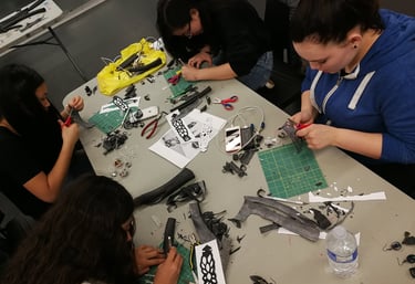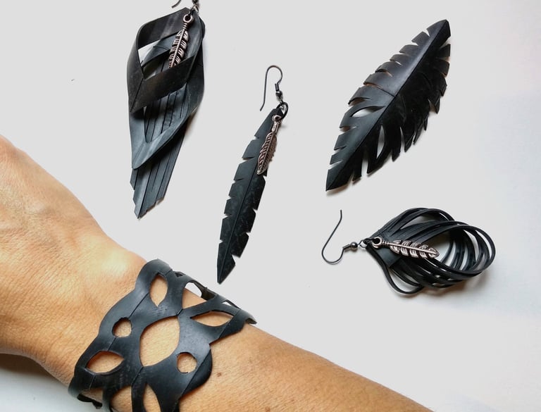 Participants transform recycled bike tires into jewellery such as earrings and bracelets while learning how to use hand tools and develop problem solving skills.